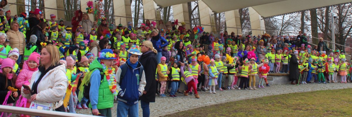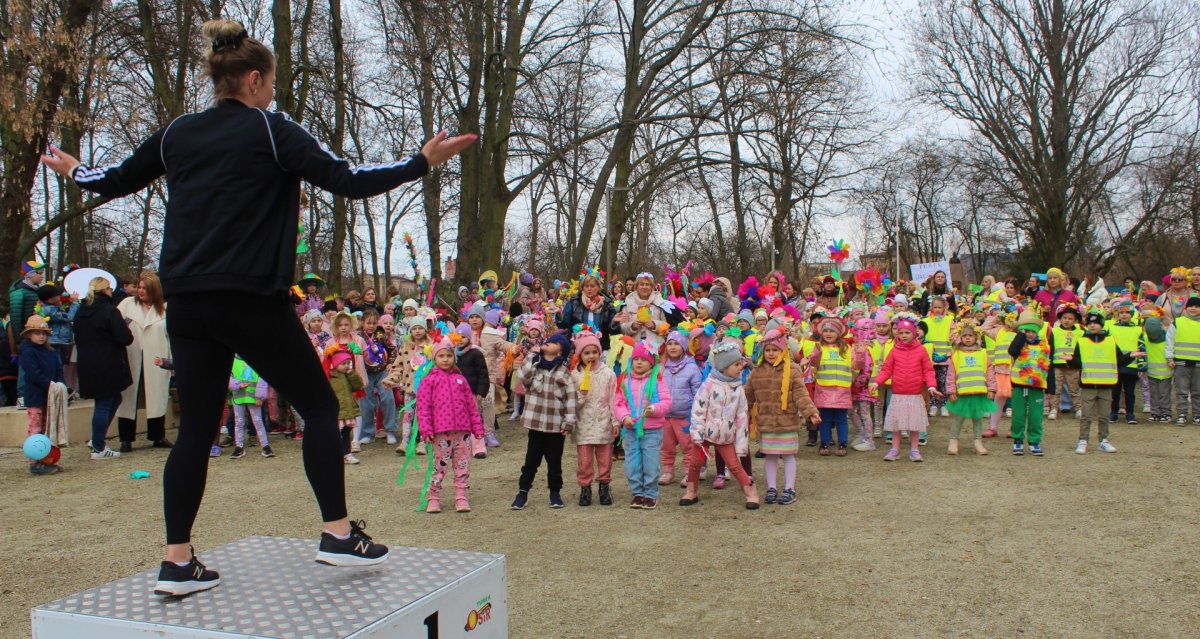 W powitaniu wiosny wzięły udział przedszkolaki, uczniowie szkół podstawowych oraz najmłodsi ze żłobka. Było kolorowo, aktywnie i bardzo radośnie Dzieci wspólnie tańczyły Zumbę , a potem - zgodnie z tradycją - pożegnaliśmy zimę, topiąc Marzannę.