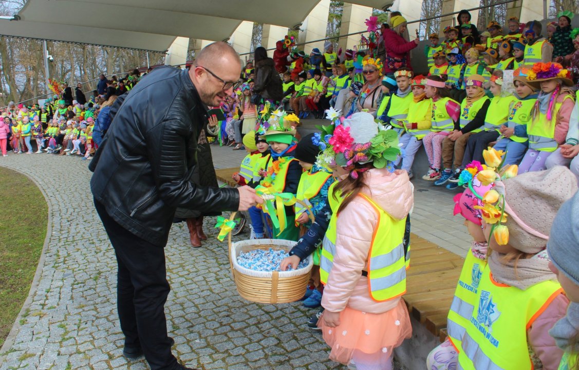 W wydarzeniu uczestniczyli Burmistrz Miasta Turku Romuald Antosik oraz Zastępca Burmistrza Joanna Misiak-Kędziora. Po krótkim wystąpieniu, wspólnie z Panią Wiosną rozdali dzieciom słodkie upominki.
