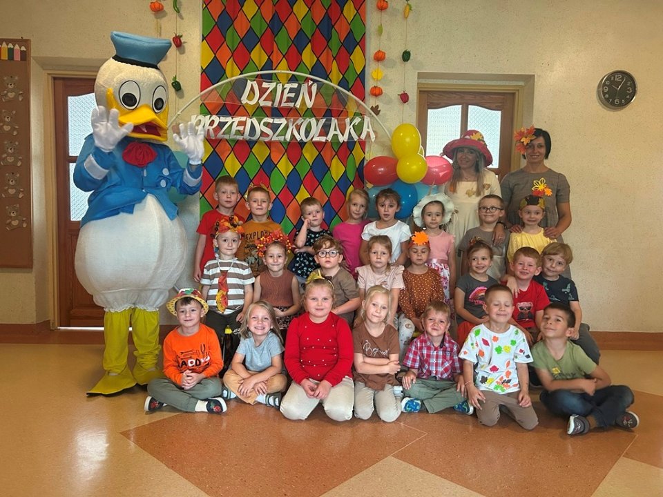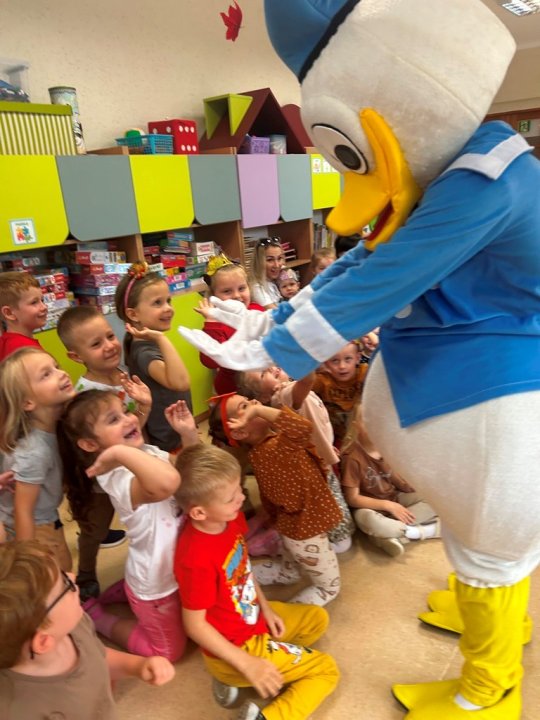 Z okazji Dnia Przedszkolaka najmłodszych odwiedziła również maskotka Kaczora Donalda, wywołując emocje i uśmiechy na dziecięcych twarzach.