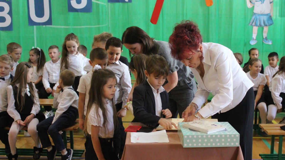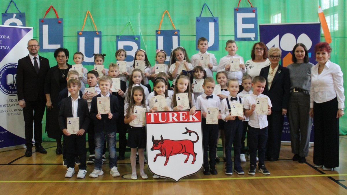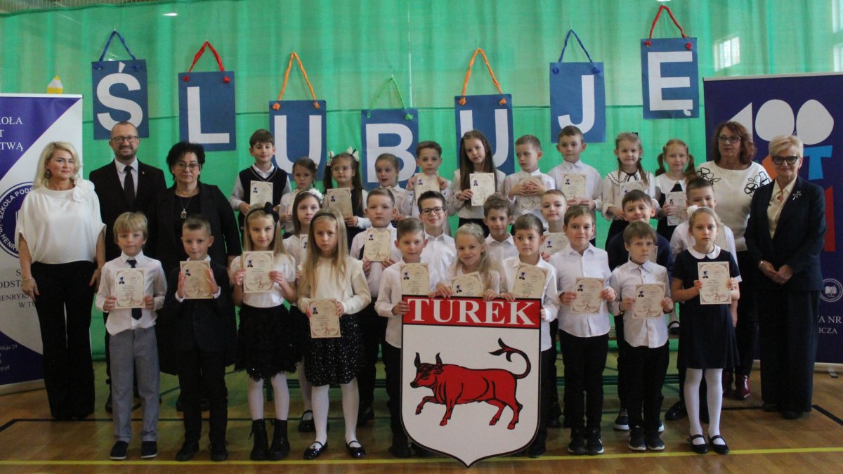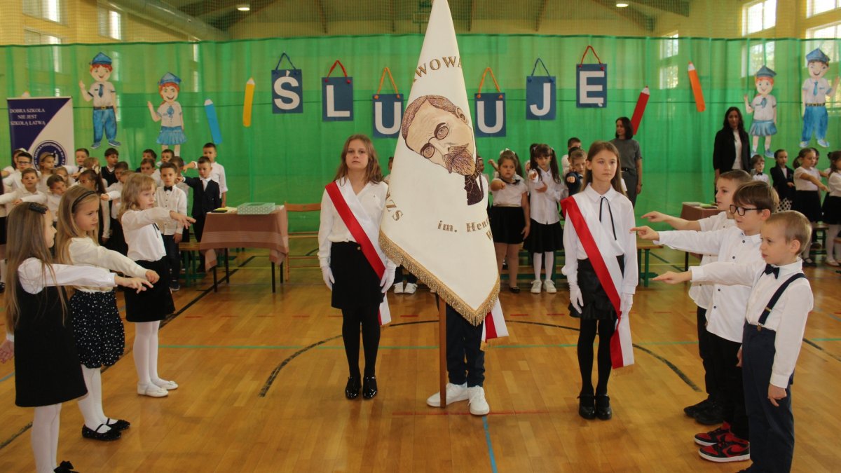 W tym roku ślubowanie złożyły dwie klasy pierwsze. Uroczystość miała niezwykle podniosły charakter- dzieci ubrane były w symboliczne, granatowe togi, co nadało wydarzeniu wyjątkowej, niemal akademickiej oprawy. Pierwszoklasiści obiecali pilnie się uczyć, być dobrymi kolegami i z szacunkiem, odnosić się do nauczycieli oraz rodziców.