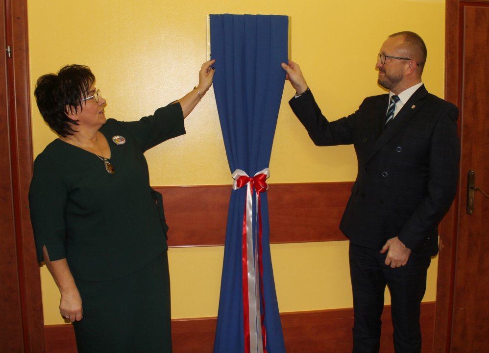 Odsłonięto pamiątkową tablicę, która jest hołdem dla osób, którzy tworzyli historię szkoły i przyczynili się do jej powstania i rozwoju.
