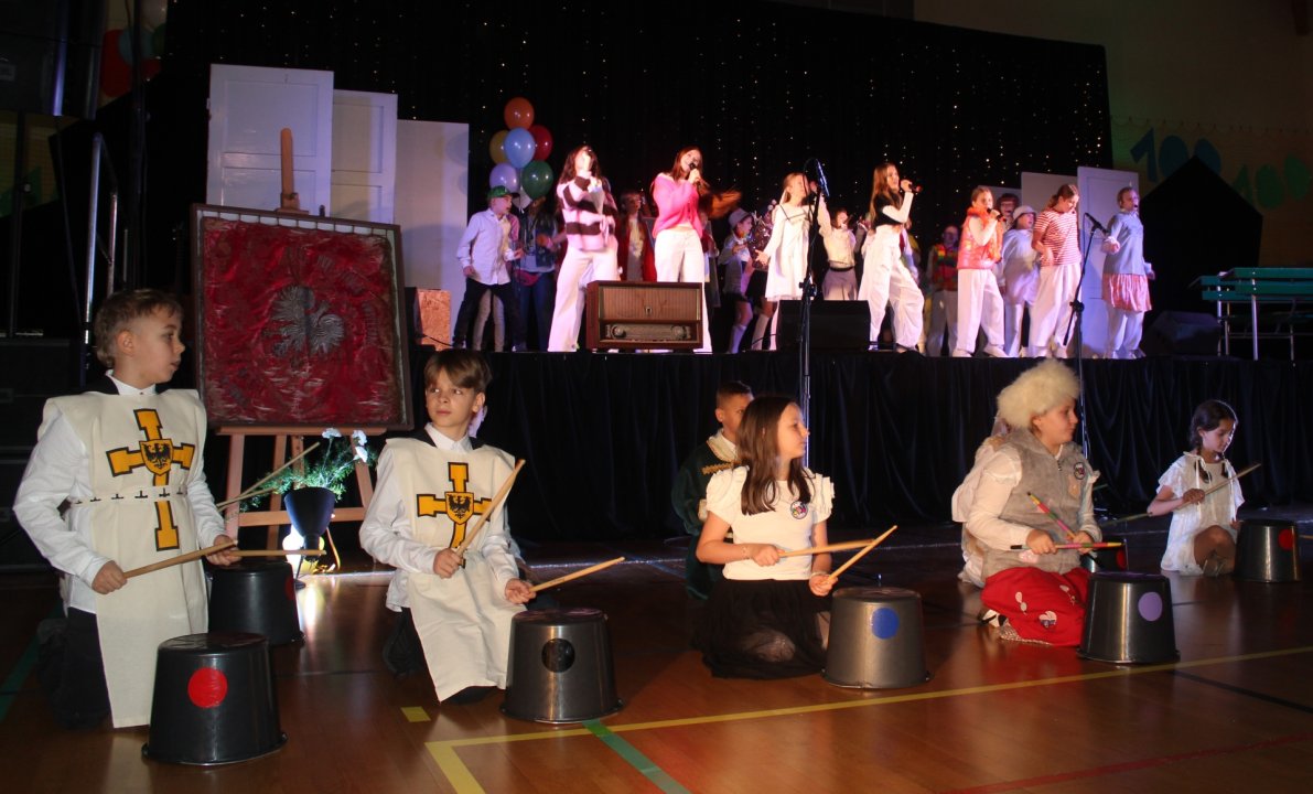 Specjalnie na tę okazję przygotowano bogaty program artystyczny, podczas którego uczniowie i absolwenci przedstawili historię szkoły na tle wydarzeń dziejowych i społecznych. Drzwi były klamrą spinającą całość występu - drzwi były metaforą szkoły, dzięki której otwierają się nowe możliwości.