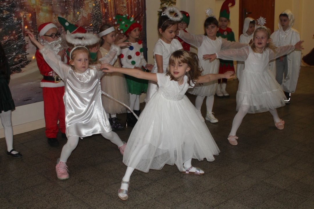 Opowieść przeplatana była kolędami i piosenkami świątecznymi oraz tańcem. Śpiew i radość dzieci wprowadziła wszystkich w radosny czas oczekiwania.