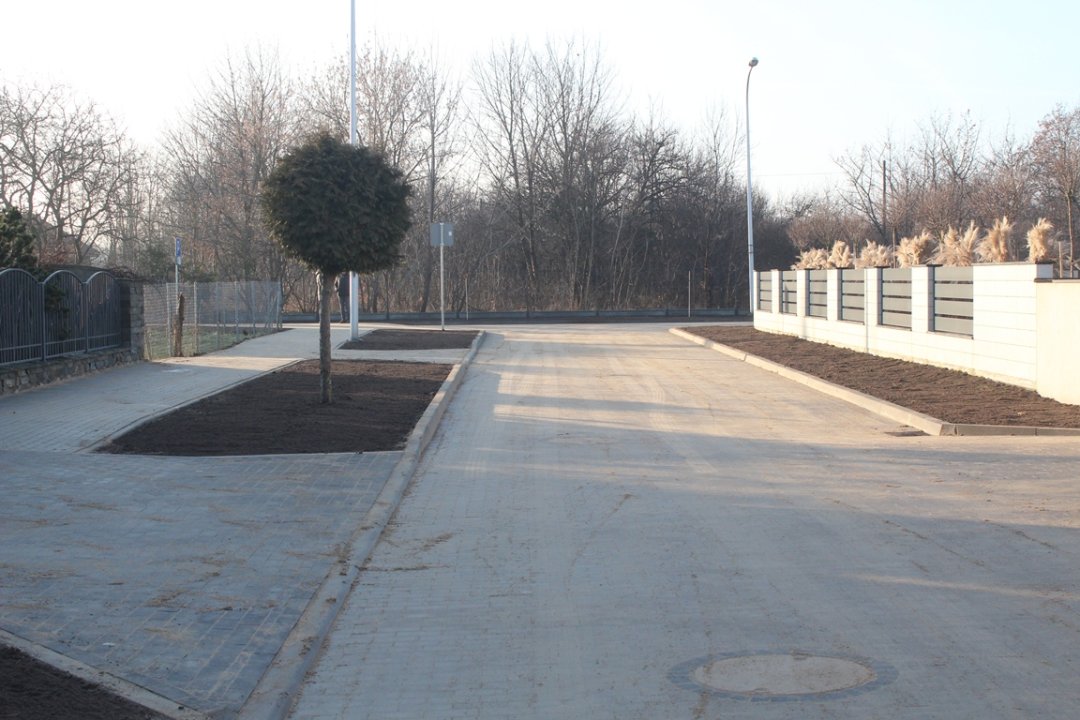 Roboty budowlane polegały na budowie warstwy wierzchniej jezdni wraz z zatoczkami postojowymi i zjazdami na posesje indywidualne oraz drogi dla pieszych (chodników), kanalizacji deszczowej, a także montażu oświetlenia drogowego, które polegało na przeniesieniu słupów oświetleniowych na drugą stronę ulicy) oraz przebudowie sieci elektroenergetycznej i sieci telekomunikacyjnych.