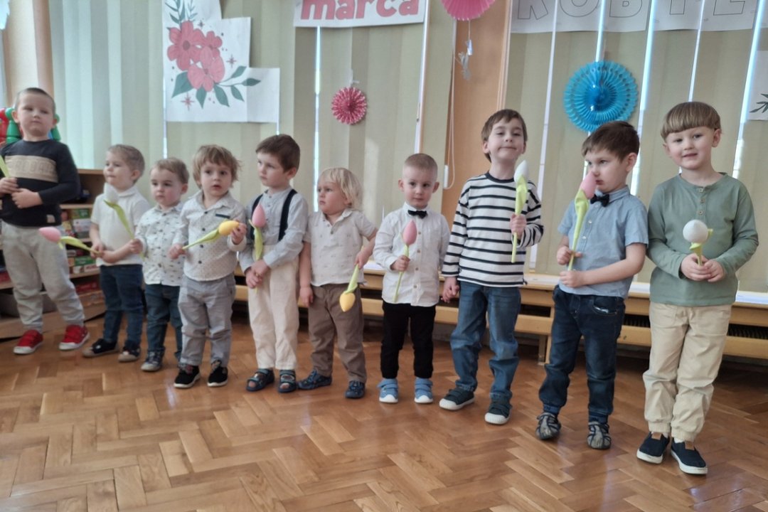 W poniedziałek, 9 marca radosna atmosfera panowała od samego rana. Chłopcy ze szczególnym zaangażowaniem starali się, aby ten dzień uczynić wyjątkowo miłym. Jako mali dżentelmeni wyręczali dziewczynki w codziennych obowiązkach, między innymi w porządkowaniu sali po zabawie.