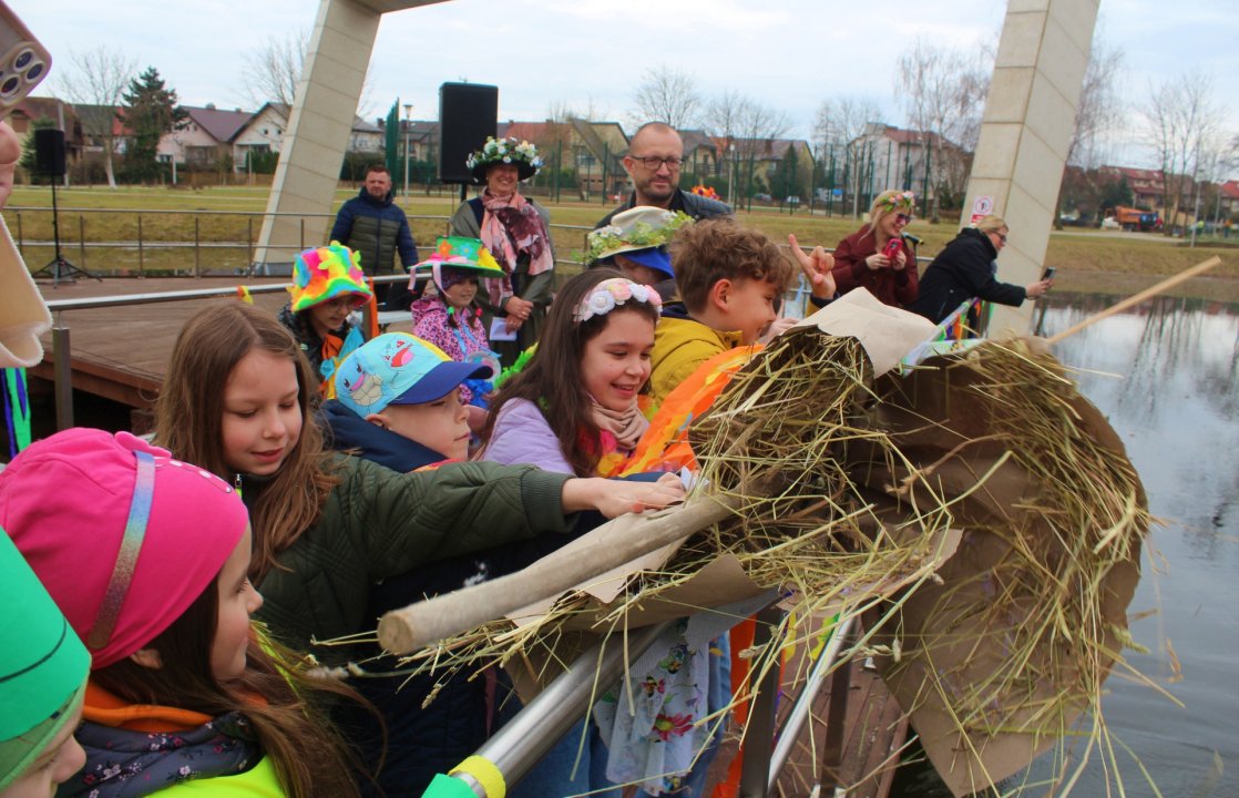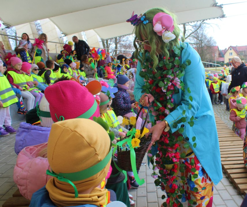 W powitaniu wiosny wzięły udział przedszkolaki, uczniowie szkół podstawowych oraz najmłodsi ze żłobka. Było kolorowo, aktywnie i bardzo radośnie Dzieci wspólnie tańczyły Zumbę , a potem - zgodnie z tradycją - pożegnaliśmy zimę, topiąc Marzannę.