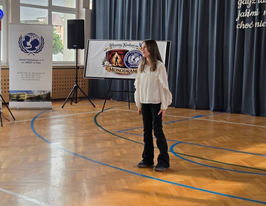 26 marca 2026 roku w Szkole Podstawowej nr 5 im. UNICEF w Turku odbył się „Wiosenny Powiatowy Konkurs na Monodram” – wyjątkowe wydarzenie o charakterze artystyczno-edukacyjnym, do którego zostali zaproszeni uczniowie szkół podstawowych z miasta, gminy i powiatu tureckiego. Konkurs, mający formułę międzyszkolną, stał się prawdziwym świętem młodego teatru.