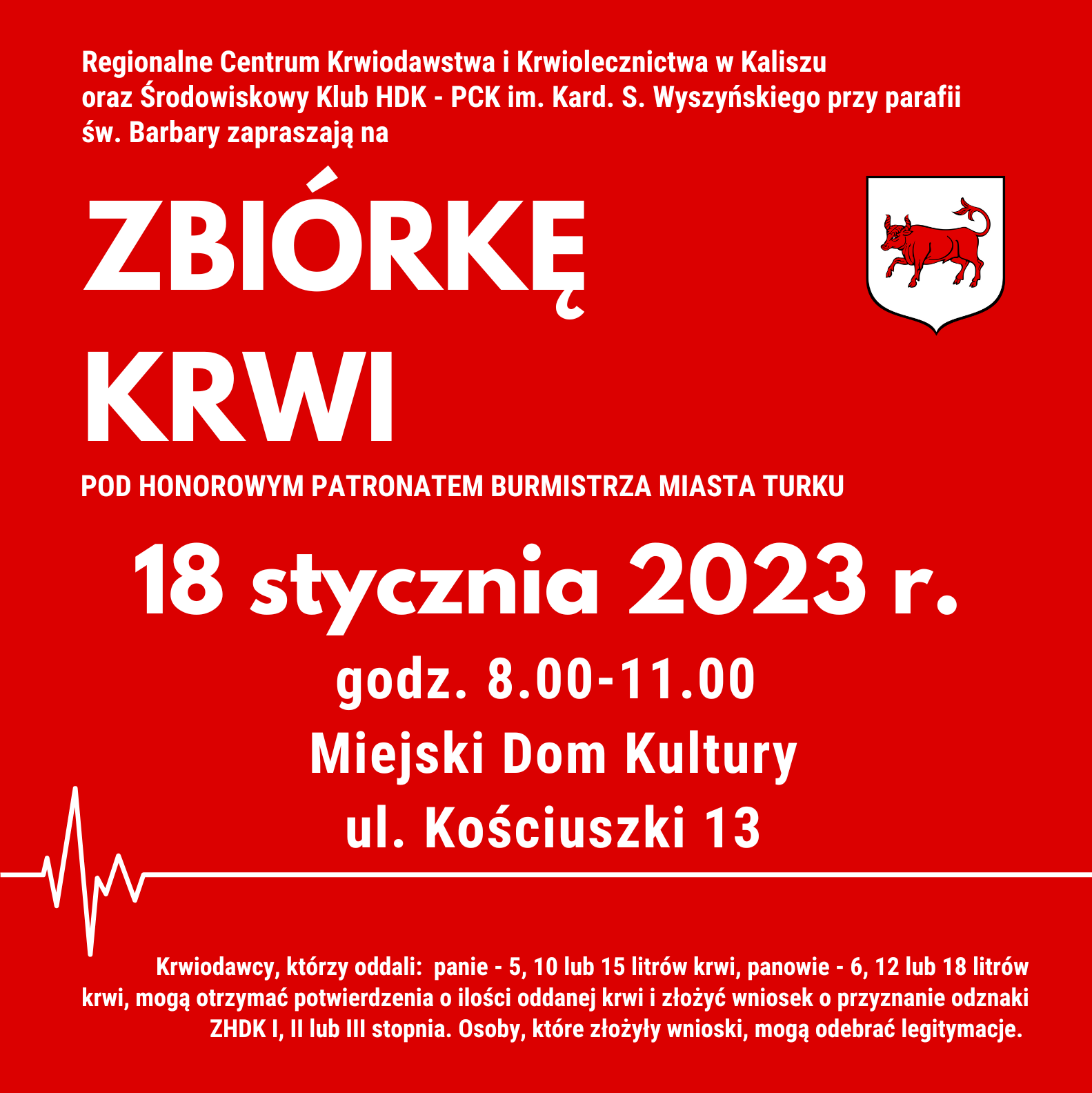 Kolejna zbiórka krwi odbędzie się 18 stycznia 2023 r. w godzinach od 8.00 do 11.00 w Miejskim Domu Kultury w Turku.