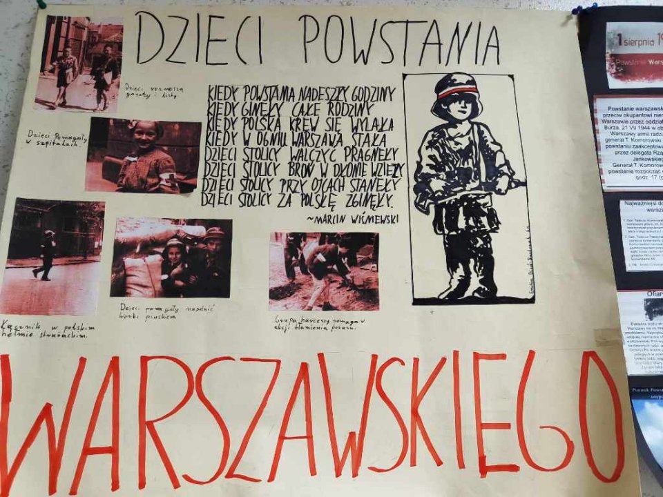 W czasie zajęć w klasach piątych i szóstych został zrealizowany scenariusz Mały roznosiciel nadziei. Uczniowie prowadzili dyskusję o roli dzieci w Powstaniu Warszawskim.