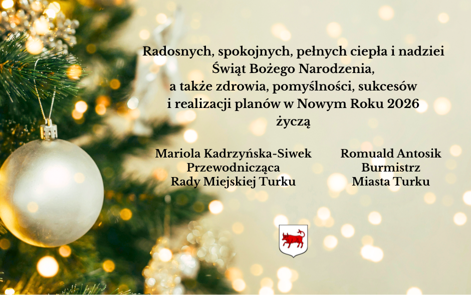 Życzenia świąteczno-noworoczne od Burmistrza Miasta Turku i od Przewodniczącej Rady Miejskiej Turku.