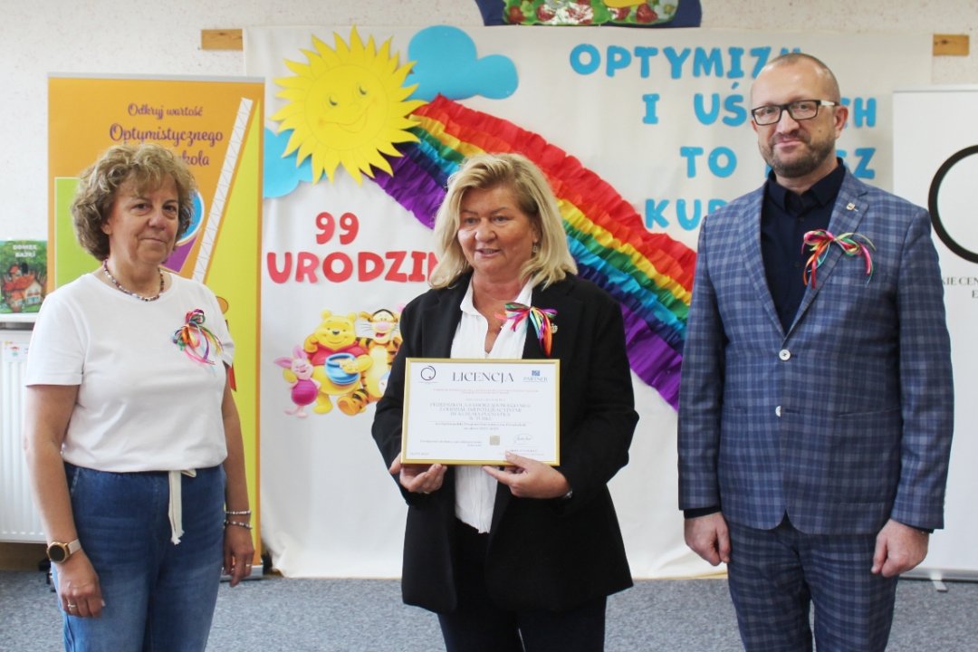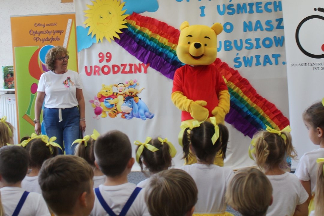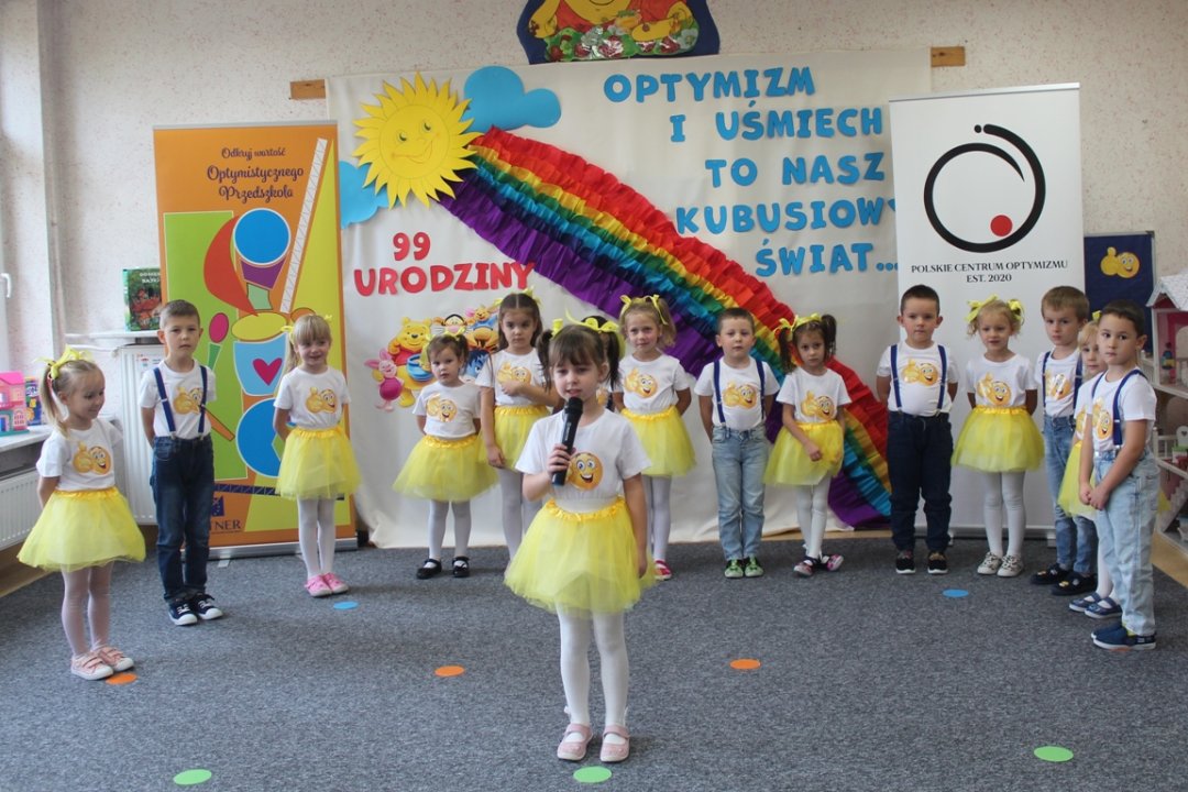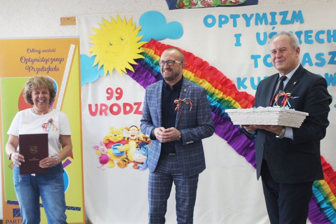 Podczas uroczystości symboliczny certyfikat ,,Optymistycznego Przedszkola” wręczyła Mirela Nawrot - współautorka projektu i założycielka Polskiego Centrum Optymizmu. W wydarzeniu uczestniczyła Dyrekcja oraz Kadra Pedagogiczna placówki, Burmistrz Turku, zaproszeni goście oraz optymistyczne przedszkolaki. Przybył również patron Przedszkola, czyli Kubuś Puchatek we własnej osobie.