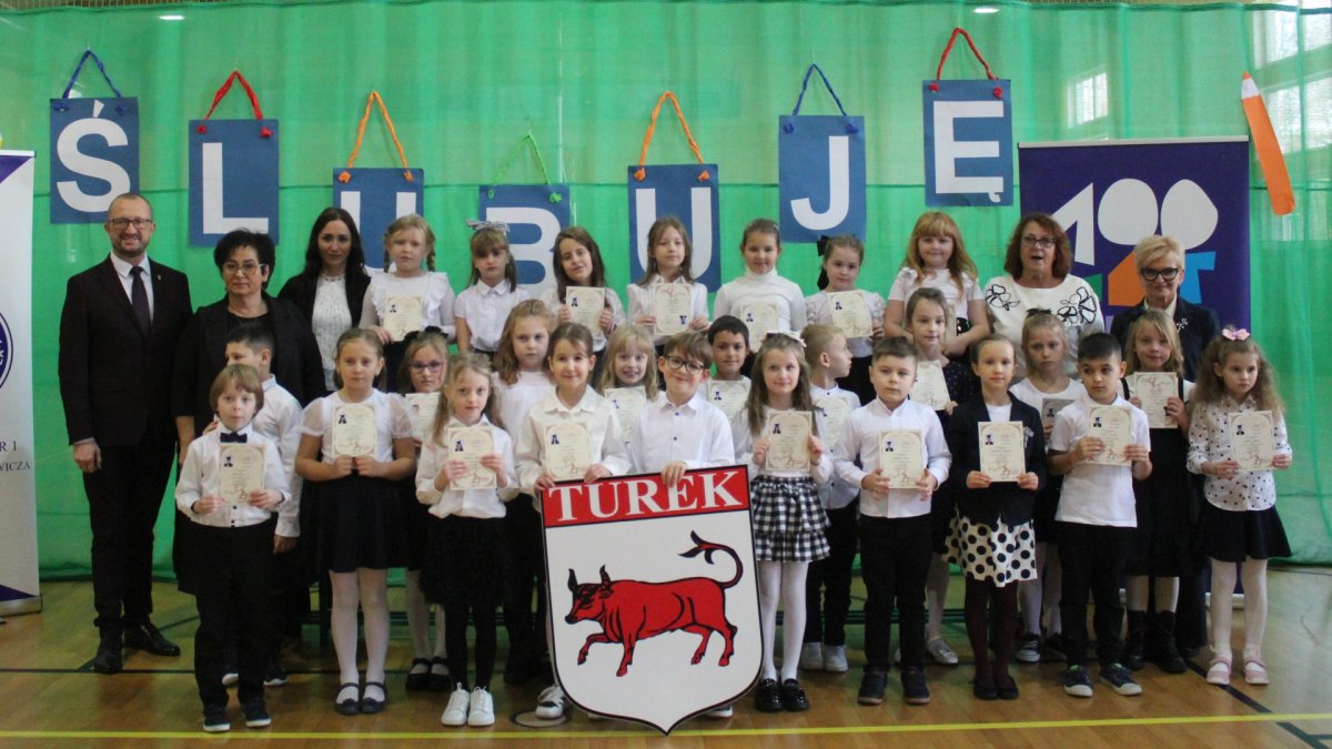W tym roku ślubowanie złożyły dwie klasy pierwsze. Uroczystość miała niezwykle podniosły charakter- dzieci ubrane były w symboliczne, granatowe togi, co nadało wydarzeniu wyjątkowej, niemal akademickiej oprawy. Pierwszoklasiści obiecali pilnie się uczyć, być dobrymi kolegami i z szacunkiem, odnosić się do nauczycieli oraz rodziców.