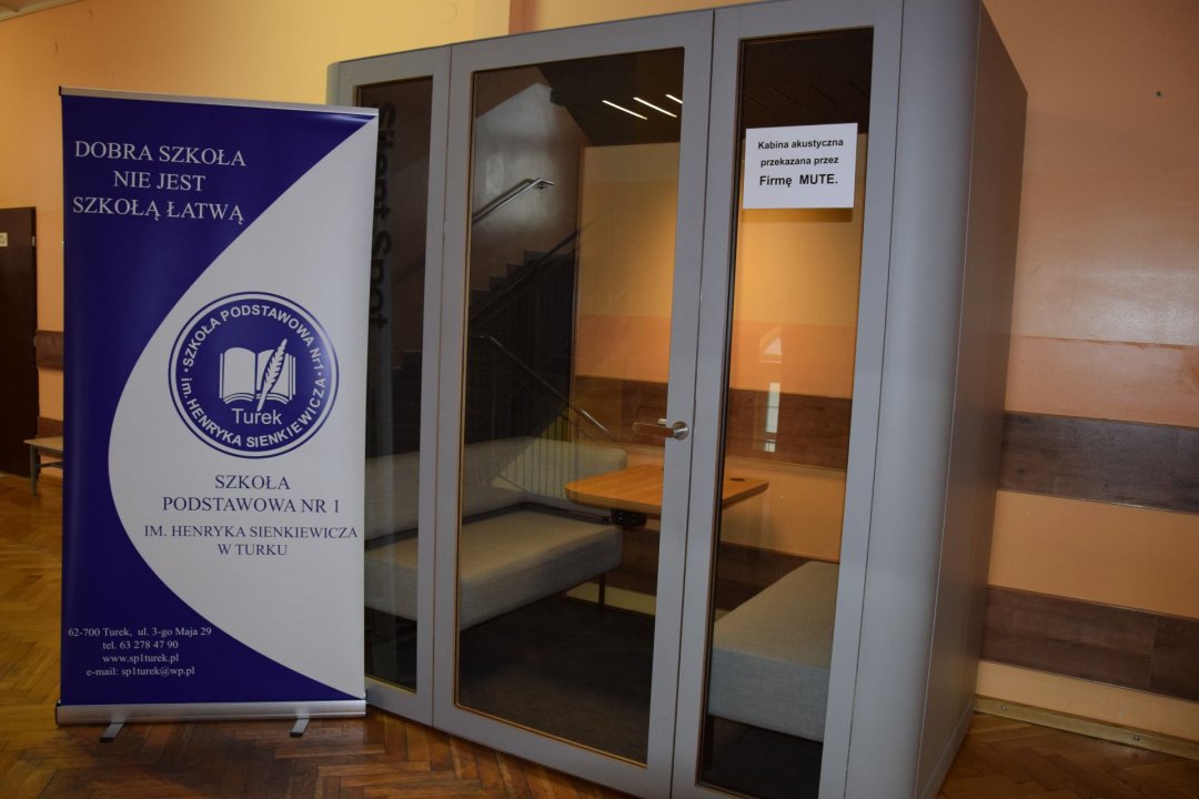Szkoła Podstawowa nr 1 wzbogaciła się o nowoczesną kabinę akustyczną SPACE L przekazaną przez firmę MUTE z Galewa.