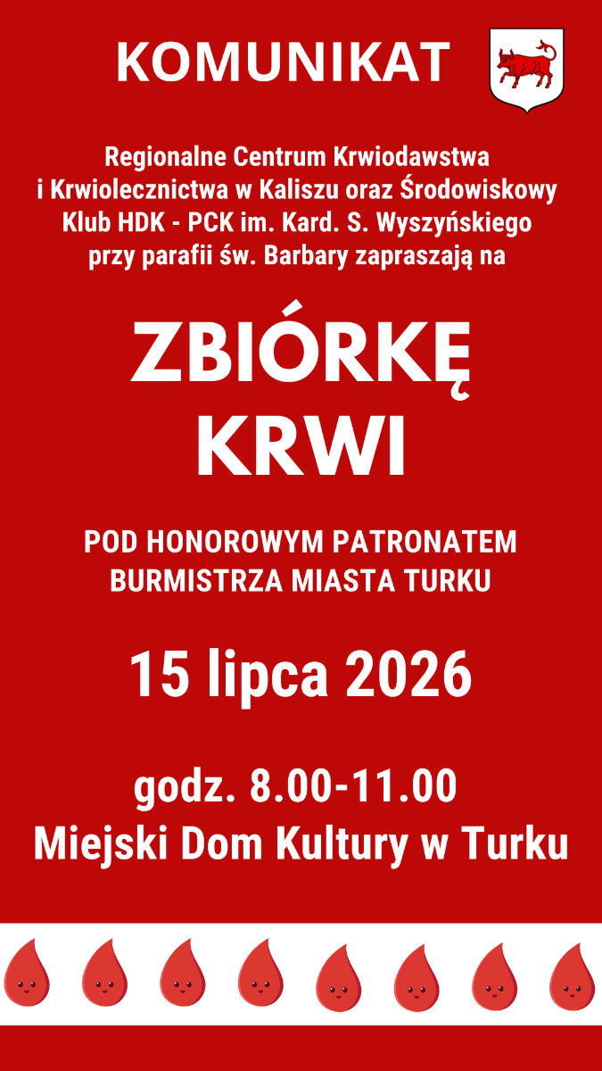 Zbiórka krwi pod honorowym patronatem Burmistrza Miasta Turku